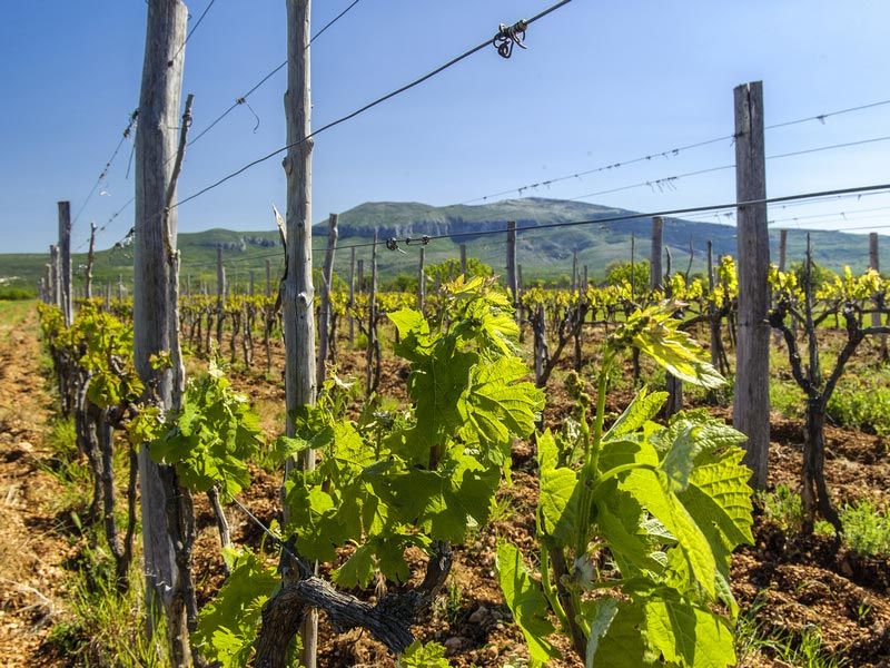 Na drniškom području uzgaja se nekoliko sorti autohtone vinove loze. Od bijelih sorti prisutne su debit i maraština, a od crnih lasina i plavina. U novije vrijeme sve više se udomaćio i merlot od kojeg se također rade kvalitetna vina. U ovdašnjoj je tradiciji ispijanje vina iz suska, posude izrađene od smrekova drva. Spoj mirisa smreke i kvalitetnog domaćeg vina iskustvo je koje degustator ne zaboravlja.